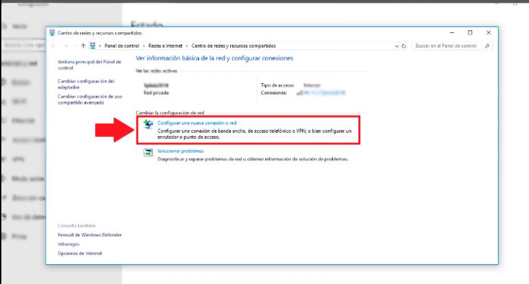 - En la nueva ventana, selecciona y haz clic en la opción de “Configurar una nueva conexión o red”.